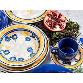 Kit 4 Pratos Rasos Donna Giardino Oxford Cerâmica 24cm - As louças da Biona possuem formatos tradicionais e muito funcionais, além de contarem com estampas alegres e coloridas. A coleção Giardino tem o nome em italiano, que significa jardim. A estampa mistura as cores azul e amarela, criando uma composição marcante, que vai encantar na mesa.