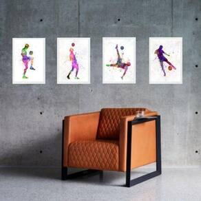 Kit 4 quadros aquarela futebol 33x24cm Moldura: madeira preta Informações do produto tire todas as suas dúvidas no descritivo abaixo: decoração para quarto, sala, cozinha, escritório, área gourmet e muito mais. Chega de paredes vazias medidas - cada peça tem 33x24cm a4 . Material do papel - papel fotográfico brilhante de altíssima resolução acabamento - todos os quadros são acompanhados de uma película de acetato para proteção da imagem. - os quadros são embalados de forma segura com plástico bolha com camada dupla de acordo com o tamanho dos quadros. Garantia - garantia de 3 meses. Meu quadro chegou. Como posso fixá-lo Você precisa apenas de um martelo e um prego, pois os quadros já vão acompanhados de penduradores. Esta é a forma mais indicada. Caso prefira, você pode utilizar uma fita dupla face neste caso, sugerimos de alta qualidade para evitar que descole e seu quadro caia . Como posso limpar meu quadro A limpeza é feita como um móvel comum da sua casa. Apenas um pano seco ou espanador são suficientes para tal