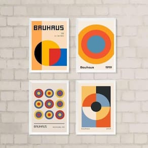 Kit 4 quadros arte bauhaus círculos 24x18cm - com vidro Moldura: madeira branca Informações do produto tire todas as suas dúvidas no descritivo abaixo: decoração para quarto, sala, cozinha, escritório, área gourmet e muito mais. Chega de paredes vazias medidas - cada peça tem 24x18cm a5 . Material do papel - papel fotográfico brilhante de altíssima resolução acabamento - todos os quadros são acompanhados de vidro para proteção da imagem. - moldura em madeira maciça na cor preta ou branca conforme produto escolhido e pendurador . - os quadros são embalados de forma segura com plástico bolha com camada dupla de acordo com o tamanho dos quadros. Garantia - garantia de 3 meses. Meu quadro chegou. Como posso fixá-lo Você precisa apenas de um martelo e um prego, pois os quadros já vão acompanhados de penduradores. Esta é a forma mais indicada. Como posso limpar meu quadro A limpeza é feita como um móvel comum da sua casa. Apenas um pano seco ou espanador são suficientes para tal