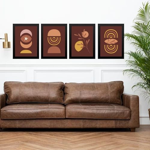 Kit 4 quadros artes escandinavas marrom e mostarda 24x18cm - com vidro Cor: moldura branca Informações do produto tire todas as suas dúvidas no descritivo abaixo: decoração para quarto, sala, cozinha, escritório, área gourmet e muito mais. Chega de paredes vazias medidas - cada peça tem 24x18cm a5 . Material do papel - papel fotográfico brilhante de altíssima resolução acabamento - todos os quadros são acompanhados de vidro para proteção da imagem. - moldura em madeira maciça na cor preta ou branca conforme produto escolhido e pendurador . - os quadros são embalados de forma segura com plástico bolha com camada dupla de acordo com o tamanho dos quadros. Garantia - garantia de 3 meses. Meu quadro chegou. Como posso fixá-lo Você precisa apenas de um martelo e um prego, pois os quadros já vão acompanhados de penduradores. Esta é a forma mais indicada. Como posso limpar meu quadro A limpeza é feita como um móvel comum da sua casa. Apenas um pano seco ou espanador são suficientes para tal