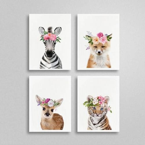 Kit 4 Quadros Bichinhos Com Coroas 24X18Cm