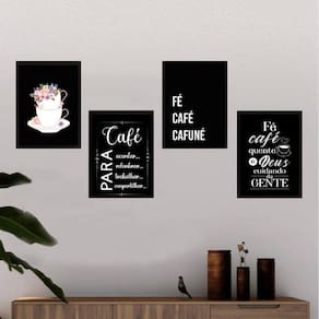 Kit 4 Quadros Café Preto 33x24cm c/ Vidro