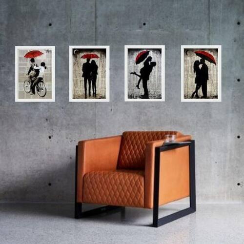 Kit 4 quadros casal sombrinha vermelha 24x18cm Moldura: madeira preta Informações do produto tire todas as suas dúvidas no descritivo abaixo: decoração para quarto, sala, cozinha, escritório, área gourmet e muito mais. Chega de paredes vazias medidas - cada peça tem 24x18cm a5 . Material do papel - papel fotográfico brilhante de altíssima resolução acabamento - todos os quadros são acompanhados de uma película de acetato para proteção da imagem. - os quadros são embalados de forma segura com plástico bolha com camada dupla de acordo com o tamanho dos quadros. Garantia - garantia de 3 meses. Meu quadro chegou. Como posso fixá-lo Você precisa apenas de um martelo e um prego, pois os quadros já vão acompanhados de penduradores. Esta é a forma mais indicada. Caso prefira, você pode utilizar uma fita dupla face neste caso, sugerimos de alta qualidade para evitar que descole e seu quadro caia . Como posso limpar meu quadro A limpeza é feita como um móvel comum da sua casa. Apenas um pano seco ou espanador são suficientes para tal