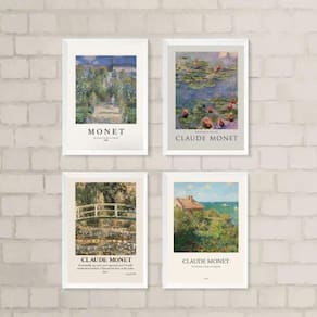 Kit 4 quadros decorativos artes de monet 45x34cm - com vidro Moldura: madeira preta Informações do produto tire todas as suas dúvidas no descritivo abaixo: decoração para quarto, sala, cozinha, escritório, área gourmet e muito mais. Chega de paredes vazias medidas - cada peça tem 45x34cm a3 . Material do papel - papel fotográfico brilhante de altíssima resolução acabamento - todos os quadros são acompanhados de vidro para proteção da imagem. - moldura em madeira maciça na cor preta ou branca conforme produto escolhido e pendurador . - os quadros são embalados de forma segura com plástico bolha com camada dupla de acordo com o tamanho dos quadros. Garantia - garantia de 3 meses. Meu quadro chegou. Como posso fixá-lo Você precisa apenas de um martelo e um prego, pois os quadros já vão acompanhados de penduradores. Esta é a forma mais indicada. Como posso limpar meu quadro A limpeza é feita como um móvel comum da sua casa. Apenas um pano seco ou espanador são suficientes para tal