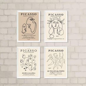 Kit 4 quadros decorativos artes picasso 45x34cm Moldura: madeira preta Informações do produto tire todas as suas dúvidas no descritivo abaixo: decoração para quarto, sala, cozinha, escritório, área gourmet e muito mais. Chega de paredes vazias. Medidas - cada peça tem 45x34cm a3 . Material do papel - papel fotográfico brilhante de altíssima resolução acabamento - todos os quadros são acompanhados de uma película de acetato para proteção da imagem. - os quadros são embalados de forma segura com plástico bolha com camada dupla de acordo com o tamanho dos quadros. Garantia - garantia de 3 meses. Meu quadro chegou. Como posso fixá-lo Você precisa apenas de um martelo e um prego, pois os quadros já vão acompanhados de penduradores. Esta é a forma mais indicada. Caso prefira, você pode utilizar uma fita dupla face neste caso, sugerimos de alta qualidade para evitar que descole e seu quadro caia . Como posso limpar meu quadro A limpeza é feita como um móvel comum da sua casa. Apenas um pano seco ou espanador são suficientes para tal