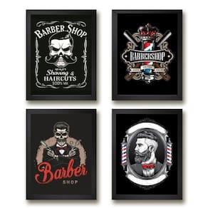 O Kit 4 Quadros Decorativos Para Barbearia 33X24Cm - Com Vidro é perfeito para decorar o ambiente da sua barbearia com muito estilo e personalidade. Cada peça possui um tamanho de 33x24cm A4 e é feita com papel fotográfico brilhante de altíssima resolução.