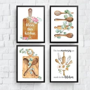 Kit 4 quadros decorativos cozinha abençoada 33x24cm Moldura: madeira branca Informações do produto tire todas as suas dúvidas no descritivo abaixo: decoração para quarto, sala, cozinha, escritório, área gourmet e muito mais. Chega de paredes vazias medidas - cada peça tem 33x24cm a4 . Material do papel - papel fotográfico brilhante de altíssima resolução acabamento - todos os quadros são acompanhados de uma película de acetato para proteção da imagem. - os quadros são embalados de forma segura com plástico bolha com camada dupla de acordo com o tamanho dos quadros. Garantia - garantia de 3 meses. Meu quadro chegou. Como posso fixá-lo Você precisa apenas de um martelo e um prego, pois os quadros já vão acompanhados de penduradores. Esta é a forma mais indicada. Caso prefira, você pode utilizar uma fita dupla face neste caso, sugerimos de alta qualidade para evitar que descole e seu quadro caia . Como posso limpar meu quadro A limpeza é feita como um móvel comum da sua casa. Apenas um pano seco ou espanador são suficientes para tal