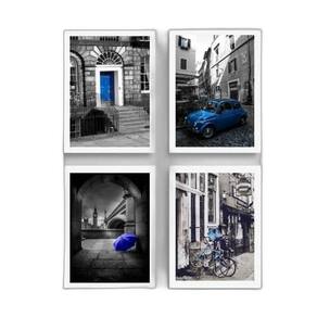 Especificações técnicas Marca: Quadros On-Line Modelo: Fotografias Azuis Quantidade: 4 Moldura: Branca Tamanho total: 34 x 23 cm Tamanho imagem: A4 20 x 30 Material: Papel Fotográfico Brilhante Acabamento: Película de Acetato Moldura: Madeira Limpeza: Pano seco ou espanador Garantia: 3 meses