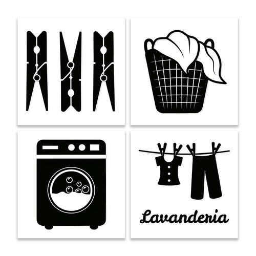 KIT composto por 4 Placas Decorativas. Ideal para lavanderia e muitos outros.