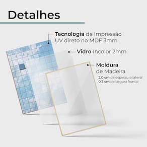 - Com Vidro Incolor 2mm e Impressão UV diretamente sobre o MDF 3mm