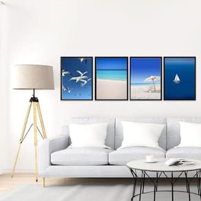Kit 4 quadros decorativos praia azul 24x18cm Moldura: madeira preta Informações do produto tire todas as suas dúvidas no descritivo abaixo: decoração para quarto, sala, cozinha, escritório, área gourmet e muito mais. Chega de paredes vazias medidas - cada peça tem 24x18cm a5 . Material do papel - papel fotográfico brilhante de altíssima resolução acabamento - todos os quadros são acompanhados de uma película de acetato para proteção da imagem. - os quadros são embalados de forma segura com plástico bolha com camada dupla de acordo com o tamanho dos quadros. Garantia - garantia de 3 meses. Meu quadro chegou. Como posso fixá-lo Você precisa apenas de um martelo e um prego, pois os quadros já vão acompanhados de penduradores. Esta é a forma mais indicada. Caso prefira, você pode utilizar uma fita dupla face neste caso, sugerimos de alta qualidade para evitar que descole e seu quadro caia . Como posso limpar meu quadro A limpeza é feita como um móvel comum da sua casa. Apenas um pano seco ou espanador são suficientes para tal