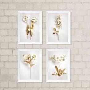 Adquira agora mesmo o Kit 4 Quadros Decorativos Flores Brancas Dourado 33X24Cm e dê um toque especial à decoração da sua casa! Ean: 7899333668109