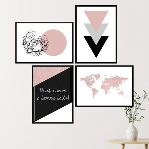 Kit 4 quadros geométricos com frase deus 45x34cm Tamanho: a3 45 x 34 Acabamento: película de acetato Moldura: madeira branca Informações do produto Tire todas as suas dúvidas no descritivo abaixo: Decoração para quarto, sala, cozinha, escritório, área gourmet e muito mais. Chega de paredes vazias Medidas - cada peça tem 45x34cm a3 . Material do papel - papel fotográfico brilhante de altíssima resolução Acabamento - todos os quadros são acompanhados de uma película de acetato para proteção da imagem. - moldura em madeira maciça na cor preta ou branca e pendurador móvel que pode ser retirado facilmente caso deseje fixar com fita dupla face. - os quadros são embalados de forma segura com plástico bolha com camada dupla de acordo com o tamanho dos quadros. - de 3 meses Prazo de envio Pedimos 24 horas úteis no máximo para enviar seu pedido após o envio, segue os prazos normais dos correios, cerca de 7 exceto para norte e nordeste, que pode ser de até 14 . Em diversas cidades, este prazo normalmente é reduzido, mas depende do prazo dos correios. Meu quadro chegou. Como posso fixá-lo Você precisa apenas de um martelo e um prego, pois os quadros já vão acompanhados de penduradores. Esta é a forma mais indicada. Caso prefira, você pode utilizar uma fita dupla face neste caso, sugerimos de alta qualidade para evitar que descole e seu quadro caia . Como posso limpar meu quadro A limpeza é feita como um móvel comum da sua casa. Apenas um pano seco ou espanador são suficientes para tal Marca: Não Informado