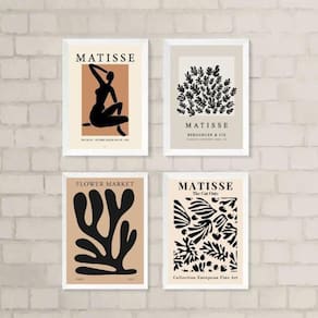 Kit 4 Quadros Matisse Bege E Preto Abstrato 24X18Cm