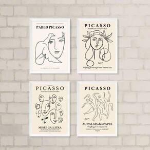 Kit 4 quadros minimalistas obras de picasso 24x18cm - com vidro
