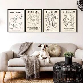 Kit 4 quadros minimalistas obras de picasso 24x18cm
