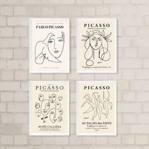 Kit 4 quadros minimalistas obras de picasso 45x34cm - com vidro