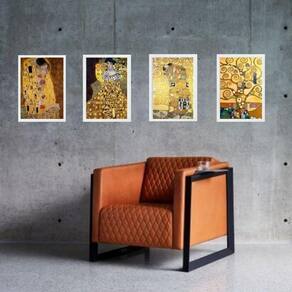 Kit 4 quadros obras de gustav klimt 24x18cm - com vidro Moldura: madeira preta Informações do produto tire todas as suas dúvidas no descritivo abaixo: decoração para quarto, sala, cozinha, escritório, área gourmet e muito mais. Chega de paredes vazias medidas - cada peça tem 24x18cm a5 . Material do papel - papel fotográfico brilhante de altíssima resolução acabamento - todos os quadros são acompanhados de vidro para proteção da imagem. - moldura em madeira maciça na cor preta ou branca conforme produto escolhido e pendurador . - os quadros são embalados de forma segura com plástico bolha com camada dupla de acordo com o tamanho dos quadros. Garantia - garantia de 3 meses. Meu quadro chegou. Como posso fixá-lo Você precisa apenas de um martelo e um prego, pois os quadros já vão acompanhados de penduradores. Esta é a forma mais indicada. Como posso limpar meu quadro A limpeza é feita como um móvel comum da sua casa. Apenas um pano seco ou espanador são suficientes para tal