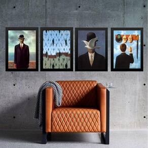 Kit 4 Quadros Obras Renne Magritte 45X34Cm - Com Vidro