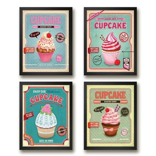Kit 4 quadros para cozinha - cupcakes 24x18cm Cor: moldura preta Informações do produto tire todas as suas dúvidas no descritivo abaixo: decoração para quarto, sala, cozinha, escritório, área gourmet e muito mais. Chega de paredes vazias medidas - cada peça tem 24x18cm a5 . Material do papel - papel fotográfico brilhante de altíssima resolução acabamento - todos os quadros são acompanhados de uma película de acetato para proteção da imagem. - os quadros são embalados de forma segura com plástico bolha com camada dupla de acordo com o tamanho dos quadros. Garantia - garantia de 3 meses. Meu quadro chegou. Como posso fixá-lo Você precisa apenas de um martelo e um prego, pois os quadros já vão acompanhados de penduradores. Esta é a forma mais indicada. Caso prefira, você pode utilizar uma fita dupla face neste caso, sugerimos de alta qualidade para evitar que descole e seu quadro caia . Como posso limpar meu quadro A limpeza é feita como um móvel comum da sua casa. Apenas um pano seco ou espanador são suficientes para tal