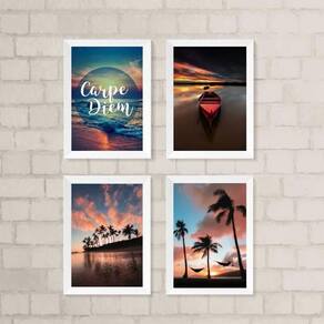 O Kit 4 Quadros Praia Por Do Sol Carpe Diem 33X24Cm é perfeito para quem busca uma decoração elegante e descontraída para diferentes ambientes da casa. Com medidas de 33x24cm A4 , cada quadro é produzido em papel fotográfico brilhante de altíssima resolução, garantindo uma imagem nítida e de excelente qualidade.