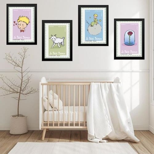 Kit 4 quadros quarto infantil pequeno príncipe 33x24cm - com vidro Cor: moldura branca Informações do produto tire todas as suas dúvidas no descritivo abaixo: decoração para quarto, sala, cozinha, escritório, área gourmet e muito mais. Chega de paredes vazias medidas - cada peça tem 33x24cm a4 . Material do papel - papel fotográfico brilhante de altíssima resolução acabamento - todos os quadros são acompanhados de vidro para proteção da imagem. - moldura em madeira maciça na cor preta ou branca conforme produto escolhido e pendurador . - os quadros são embalados de forma segura com plástico bolha com camada dupla de acordo com o tamanho dos quadros. Garantia - garantia de 3 meses. Meu quadro chegou. Como posso fixá-lo Você precisa apenas de um martelo e um prego, pois os quadros já vão acompanhados de penduradores. Esta é a forma mais indicada. Como posso limpar meu quadro A limpeza é feita como um móvel comum da sua casa. Apenas um pano seco ou espanador são suficientes para tal
