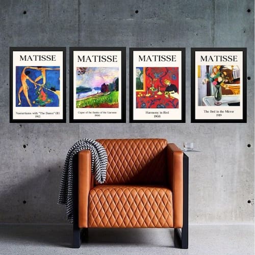 Kit 4 quadros vintage posters matisse colorido 33x24cm Moldura: madeira preta Informações do produto tire todas as suas dúvidas no descritivo abaixo: decoração para quarto, sala, cozinha, escritório, área gourmet e muito mais. Chega de paredes vazias medidas - cada peça tem 33x24cm a4 . Material do papel - papel fotográfico brilhante de altíssima resolução acabamento - todos os quadros são acompanhados de uma película de acetato para proteção da imagem. - os quadros são embalados de forma segura com plástico bolha com camada dupla de acordo com o tamanho dos quadros. - de 3 meses. Meu quadro chegou. Como posso fixá-lo Você precisa apenas de um martelo e um prego, pois os quadros já vão acompanhados de penduradores. Esta é a forma mais indicada. Caso prefira, você pode utilizar uma fita dupla face neste caso, sugerimos de alta qualidade para evitar que descole e seu quadro caia . Como posso limpar meu quadro A limpeza é feita como um móvel comum da sua casa. Apenas um pano seco ou espanador são suficientes para tal Marca: Não Informado