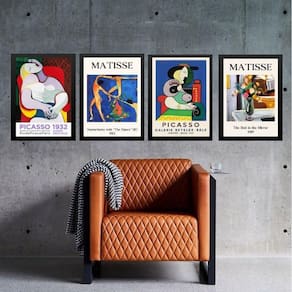 Kit 4 quadros vintage posters matisse e picasso 45x34cm Moldura: madeira branca Informações do produto tire todas as suas dúvidas no descritivo abaixo: decoração para quarto, sala, cozinha, escritório, área gourmet e muito mais. Chega de paredes vazias. Medidas - cada peça tem 45x34cm a3 . Material do papel - papel fotográfico brilhante de altíssima resolução acabamento - todos os quadros são acompanhados de uma película de acetato para proteção da imagem. - os quadros são embalados de forma segura com plástico bolha com camada dupla de acordo com o tamanho dos quadros. - de 3 meses. Meu quadro chegou. Como posso fixá-lo Você precisa apenas de um martelo e um prego, pois os quadros já vão acompanhados de penduradores. Esta é a forma mais indicada. Caso prefira, você pode utilizar uma fita dupla face neste caso, sugerimos de alta qualidade para evitar que descole e seu quadro caia . Como posso limpar meu quadro A limpeza é feita como um móvel comum da sua casa. Apenas um pano seco ou espanador são suficientes para tal Marca: Não Informado
