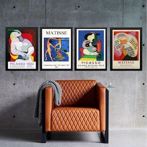 Kit 4 quadros vintage posters picasso e matisse 33x24cm Moldura: madeira branca Informações do produto tire todas as suas dúvidas no descritivo abaixo: decoração para quarto, sala, cozinha, escritório, área gourmet e muito mais. Chega de paredes vazias medidas - cada peça tem 33x24cm a4 . Material do papel - papel fotográfico brilhante de altíssima resolução acabamento - todos os quadros são acompanhados de uma película de acetato para proteção da imagem. - os quadros são embalados de forma segura com plástico bolha com camada dupla de acordo com o tamanho dos quadros. Garantia - garantia de 3 meses. Meu quadro chegou. Como posso fixá-lo Você precisa apenas de um martelo e um prego, pois os quadros já vão acompanhados de penduradores. Esta é a forma mais indicada. Caso prefira, você pode utilizar uma fita dupla face neste caso, sugerimos de alta qualidade para evitar que descole e seu quadro caia . Como posso limpar meu quadro A limpeza é feita como um móvel comum da sua casa. Apenas um pano seco ou espanador são suficientes para tal