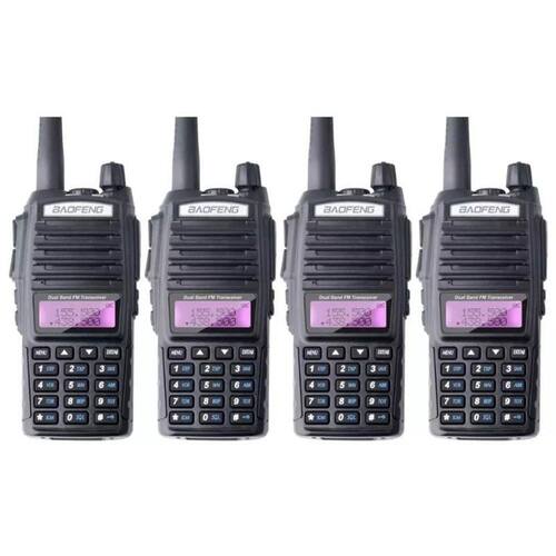 - produto: rádio comunicador baofeng - modelo: uv-82 - cor: preto - memória: 128 canais - alcance: até 12 km em campo aberto - potência de saída: 5w - voltagem: dc 7.4v - bateria interna de lítion 2800mah - modelo da bateria: bl-8 - duração da bateria: cerca de 12 horas - tempo de carregamento: aproximadamente 5 horas - temperatura de operação: -20c60c - consumo: 380mah - estabilidade de frequência: 2.5 ppm - impedância da antena: 50 ohm - modo de operação: simples ou semi-duplo - range de frequência: 65mhz108mhz recepção rádio fm - frequência: Vhf: 136mhz - 174mhz Uhf: 400mhz- 520mhz - resposta especulativo: 60db - potência de saída de áudio: 1000mw