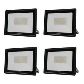 Kit 4 Refletor Led Slim 100W Prova Dágua Preto Bivolt 3000K