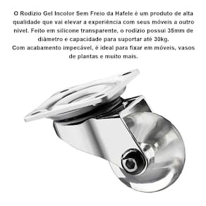 Adquira já o Kit com 4 Unidades do Rodízio Gel Incolor Sem Freio 35mm e aproveite a qualidade e durabilidade que seus móveis merecem!