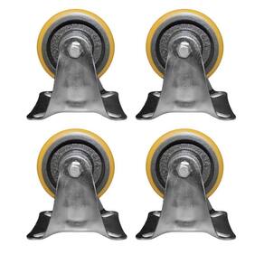 Kit com unidades de rodas 414 ferro com poliuretano placa fixo reforçadoCada roda suporta 300kgBenefícios:- boa mobilidade;- baixo ruído;- maciez e conforto;- não marca o piso.Indicação de uso:- moveis, design, indústrias, carrinhos, armários, equipamentos de som, guarda roupas, carrinhos industriais, freezers, geladeiras, mesas, vasos, etc.Indicação de pisos para uso:pisos porcelanatos, cerâmicas de resistência, empresas, fábricas, etc.Especificações:- anti-risco;- reforçado;- anti-ruído;materiais:- roda: ferro com poliuretano;- estrutura: aço.Conteúdo da embalagem: rodas 414 ferro com poliuretano placa fixogarantia do vendedor: 90 dias