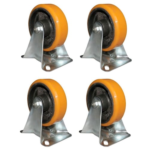 Kit com unidades de rodas 514 ferro com poliuretano placa fixo reforçadoCada roda suporta 300kgBenefícios:- boa mobilidade;- baixo ruído;- maciez e conforto;- não marca o piso.Indicação de uso:- moveis, design, indústrias, carrinhos, armários, equipamentos de som, guarda roupas, carrinhos industriais, freezers, geladeiras, mesas, vasos, etc.Indicação de pisos para uso:pisos porcelanatos, cerâmicas de resistência, empresas, fábricas, etc.Especificações:- anti-risco;- reforçado;- anti-ruído;materiais:- roda: ferro com poliuretano;- estrutura: aço.Conteúdo da embalagem: rodas 514 ferro com poliuretano placa fixogarantia do vendedor: 90 dias