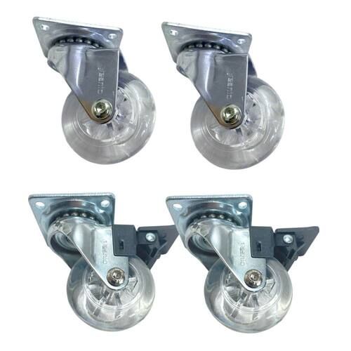 Rodízios anti-risco e anti-ruído para proteção de pisos. Fácil instalação para maior praticidade. Capacidade de até 100 kg por roda (recomendado utilizar até 85%). 2 rodízios com trava e 2 trava para mobilidade e estabilidade. Ideal para móveis, equipamentos e outras aplicações.