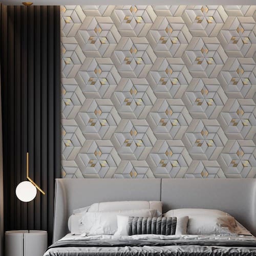 Kit 4 rolos papel de parede adesivo geométrico dourado 3,0m Conteúdo do kit:- 04 rolos de papel de parede.- 01 espátula.- 01 manual de aplicação. Medidas de cada rolo:- altura: 3,0 metros.- largura: 50 centímetros. Características:- produzido em vinil adesivo antirreflexo, próprio para decoração.- impresso em alta resolução de imagem e cores vivas.- pode ser limpo com pano úmido e sabão neutro.- material liso, não possui textura ou relevo.- anti mofo, não possui cheiro e não propaga fogo.- os rolos se encaixam lateralmente, dando continuidade ao desenho. Onde posso aplicar- pode ser aplicado em qualquer superfície lisa como paredes, madeiras, mdf, vidros, metais, gesso, etc.- não aplicar em superfícies úmidas, porosas ou com relevo. É necessário que a parede esteja amaciada. Vantagens:- papel de parede adesivo, não necessita de cola para a aplicação.- produto de fácil aplicação.- por ser material adesivo e não necessitar de cola, não faz sujeira na hora da aplicação.- impressão em alta qualidade.- renove seu ambiente de maneira fácil e rápida.