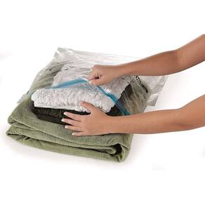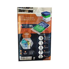 É um produto que promete diminuir em até 3 vezes o volume das peças que serão inseridas no saco. Além de proteger contra umidade produto impermeável , insetos, odores e mofo, o saco organizador a vácuo é reutilizável.