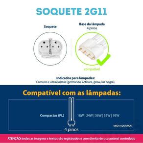 Soquete próprio para conexão elétrica com lâmpadas pl compacta de base 2g11 fluorescentes, serve para lâmpadas ultravioletas uv - uvc, uva, uvb - germicida, actínica, grow, luz negra, luz branca.
