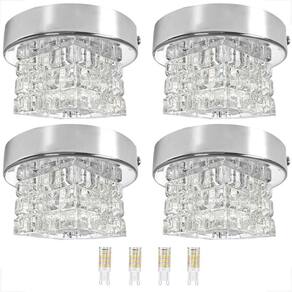 Kit 4 Spot Cristal Sobrepor Plafon Prateado Sala Bet45 + Led