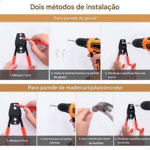 Com instalação simples, o kit já vem com parafusos e buchas inclusos, pronto para uso em paredes de madeira, tijolo ou gesso.