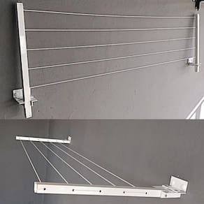 VARAL DE PAREDE ULTILIZADO PARA ESTENDER ROUPAS, ELE É DOBRAVEL E DEVE SER FIXADO NA PAREDE. O VARAL É ARTICULAVEL COM 4 VIAS CADA. QUANDO NÃO ESTÁ EM USO OS BRAÇOS PODEM SER LEVANTADOS LIBERANDO ESPAÇO NO AMBIENTE.