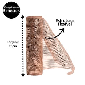Dimensões: A tela decorativa possui 25cm de largura e 5 metros de comprimento, ideal para diversas aplicações decorativas.Material: Feita com uma estrutura semirrígida, que proporciona flexibilidade e facilidade de moldagem.Design: Rosê Gold com um leve brilho, adicionando um toque de elegância e luminosidade à sua decoração.Benefícios: