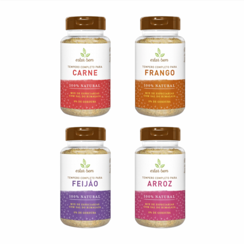 Kit com os 4 Temperos Completos Estar Bem 190g para temperar Carne, Frango, Arroz e Feijão