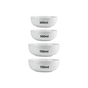 Conteúdo da Embalagem: - 01 Kit com 4 Tigelas Bowl, sendo: - 02 Tigelas Bowl de 500ml. - 02 Tigelas Bowl de 700ml.