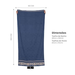 A tecnologia SoftTouch proporciona toque extra macio, com sensacao de toalha de hotel. O corpo da toalha apresenta textura em baixo relevo feita em jacquard, com barrado duplo e ornamentos bordados com linhas brilhantes que valorizam o design do modelo.