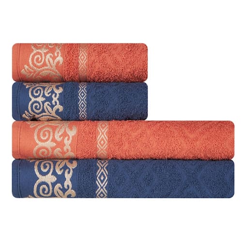 Kit 4 Toalhas Banhão e Rosto 100% Algodão Açores Marcotex - Laranja