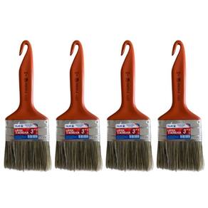 Informações técnicas: Tamanho: 3 76,2mm Cor: Laranja Materiais: - Cabo: Plástico - Cerdas: Natural Gris Superfícies aptas: Paredes de alvenaria, madeira, gesso e drywall, metal e tetos Referência: 695 Indicado para: Tinta látex e acrílica Cerdas macias