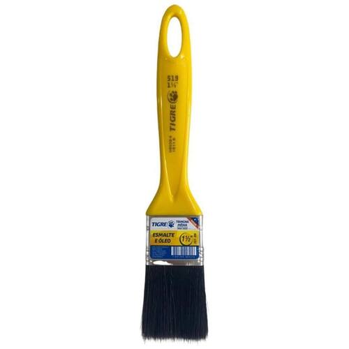 Informações técnicas: Tamanho: 1.1/2 38,1mm Cor: Amarelo Materiais: - Cabo: Plástico - Cerdas: Sintético Superfícies aptas: Paredes de alvenaria, madeira, gesso e drywall, metal e tetos Referência: 519 Indicado para: Tinta esmalte e óleo Cerdas macias