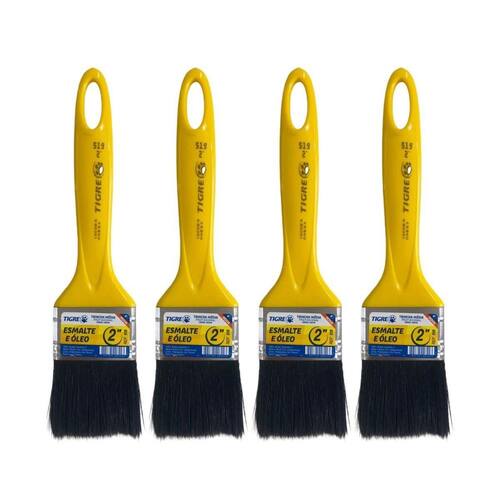 Kit 4 Trincha Pincel Para Pintura Tinta Esmalte Óleo 2'' Tigre A trincha, ideal para tintas esmalte e óleo, conta com cerdas macias e resistentes, que garante aplicação uniforme e acabamento perfeito. Cabo ergonômico proporciona conforto e precisão no uso. Perfeita para áreas grandes e detalhes, como: parede, teto, rodapé, canto e outras superfícies diversas, permitindo um trabalho rápido e de alta qualidade.