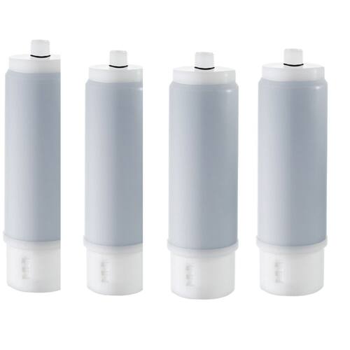 Kit com 4 refis para purificadores de água. Retenção de partículas e redução de cloro livre. Vida útil de 6.000 litros ou 6 a 9 meses. Vazão nominal e máxima de 120 litros/hora.Tipo